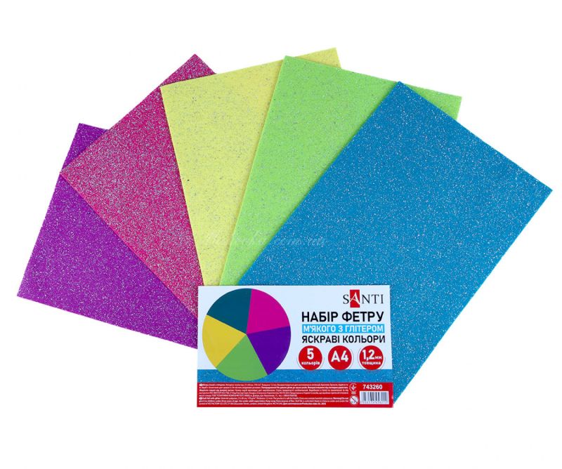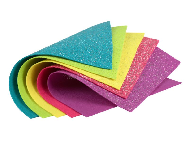 Набор из пяти ярких цветов мягкого фетра, поверхность которого покрыта маленькими блестками.
