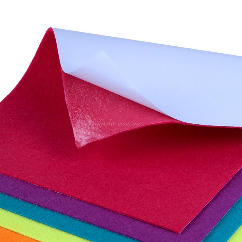 Тыльная сторона фетра имеет клеевой слой. Такой фетр можно клеить без клея, что особенно удобно для создания аппликаций. Также фетр отлично подойдет для декоративных элементов на открытки, альбомы, изделия и т.д.