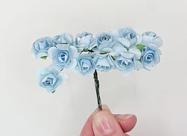 Набор бумажных розочек, бутон 15 мм, цвет Светло-Голубой, 12 шт