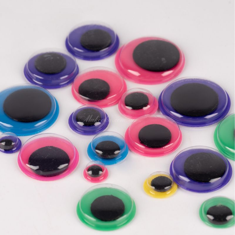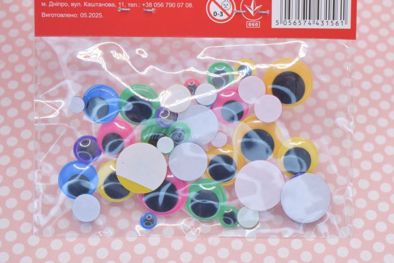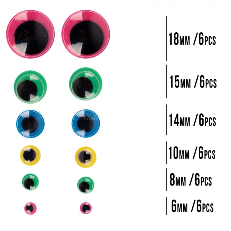 В наборе глаза разного цвета и диаметра. Цвета случайным образом, не обязательно, как на фото.