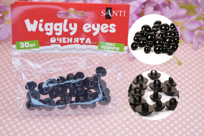 Круглые глазки в виде пуговичек. Имеют ножку-петельку, как у пуговиц. Пришиваются к игрушке.