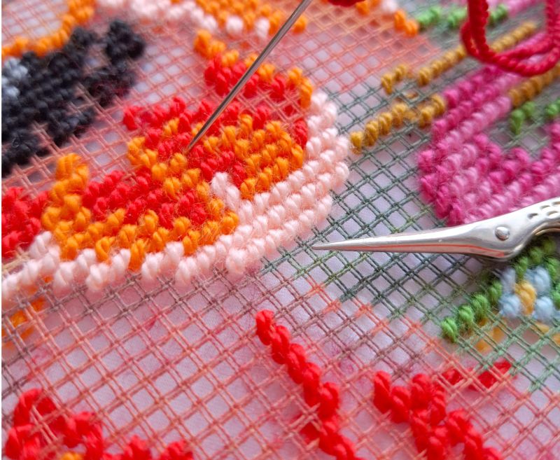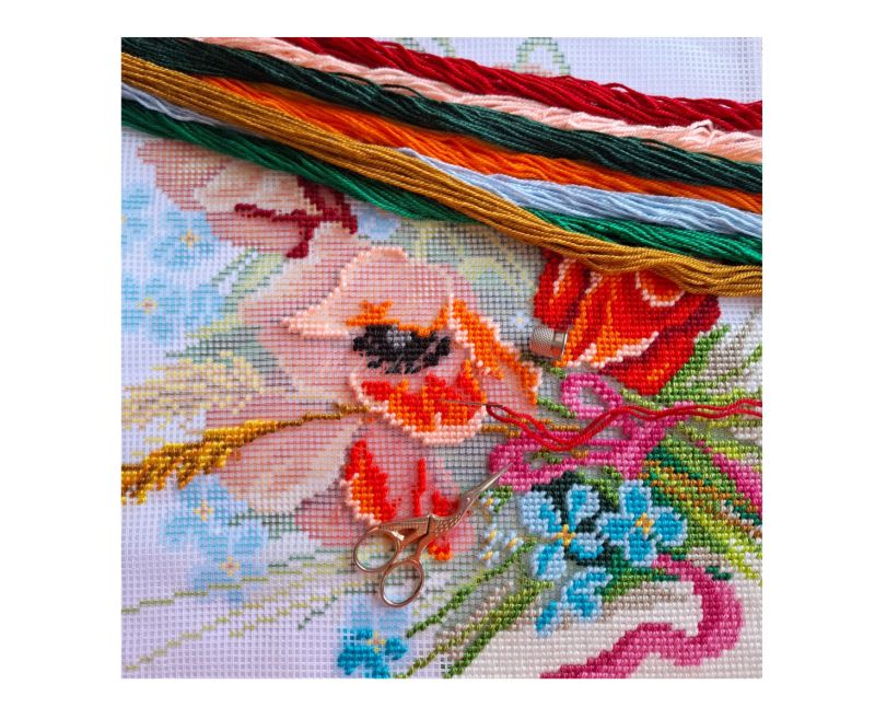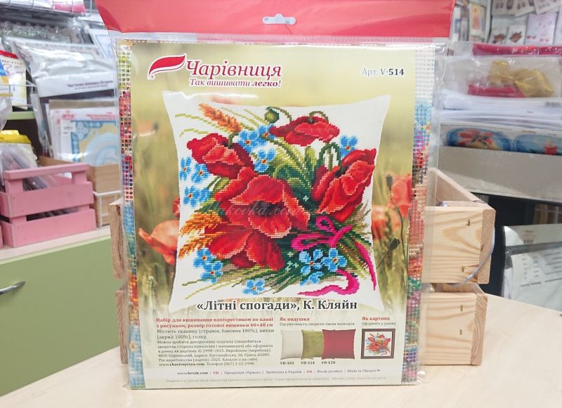 В Наборах для вшивания подушки ТМ Чаривныця используются толстые нитки и крупная канва (страмин) с нанесеннм рисунком