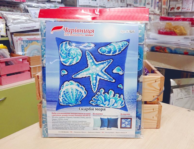 Набор для вышивания декоративной подушки полу-крестом Сокровища моря, V-525, ТМ Чаривныця