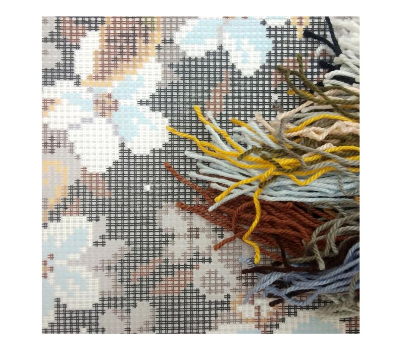 В Наборах для вшивания подушки ТМ Чаривныця используются толстые нитки и крупная канва (страмин) с нанесеннм рисунком