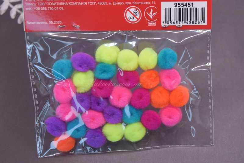 Шарики помпончики неоновые Микс, d-12мм, 30 шт. 955451SANTI,
