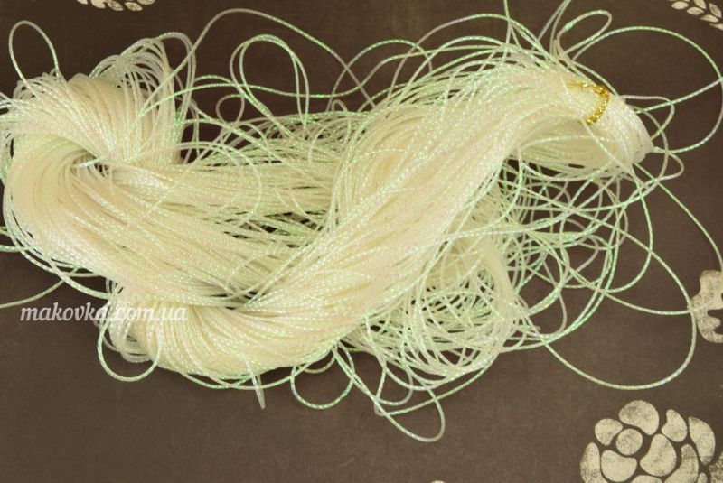 Тонкий металлизированный (люрексовый) шнур с круглым сечением. Белый, с перламутровым люрексом