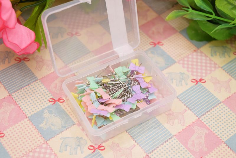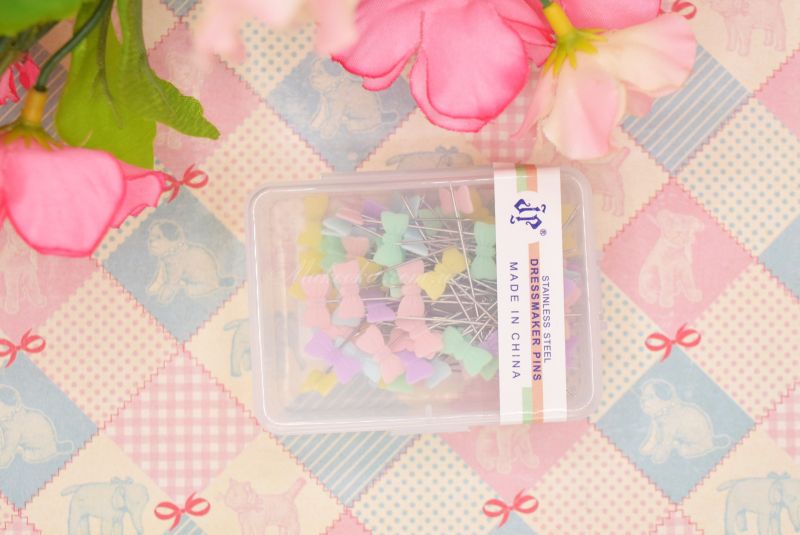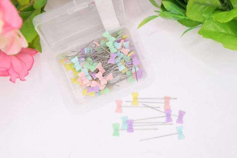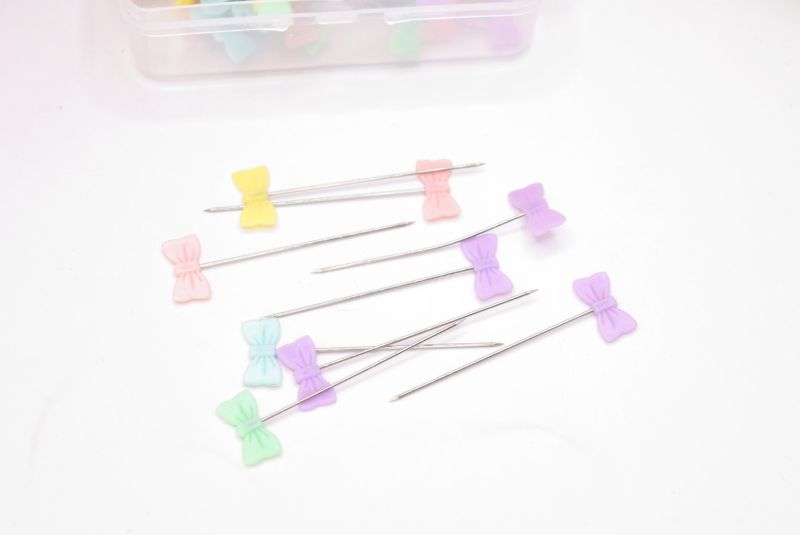 Длинные портновские булавки из стали для шитья и рукоделия. Один конец острый, а на другом, - цветная головка в форме бантика.