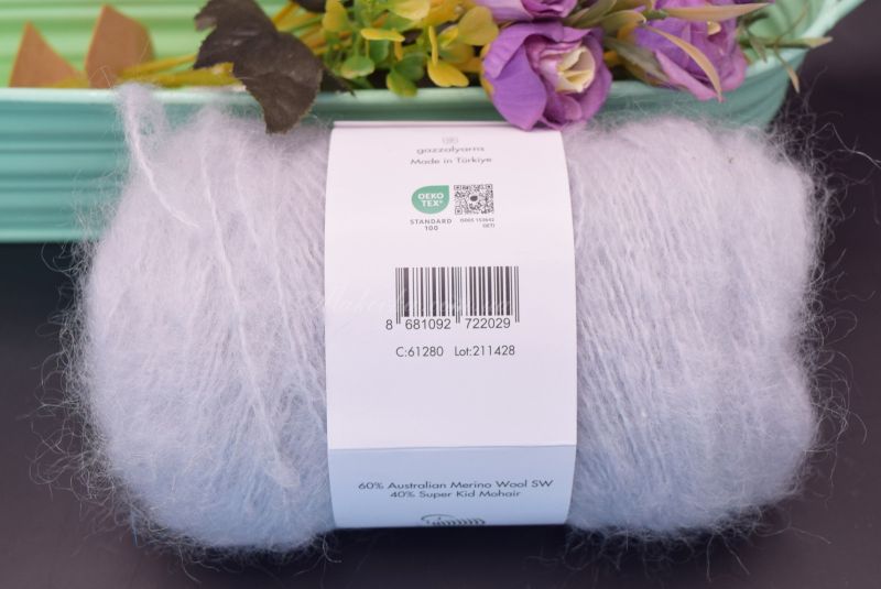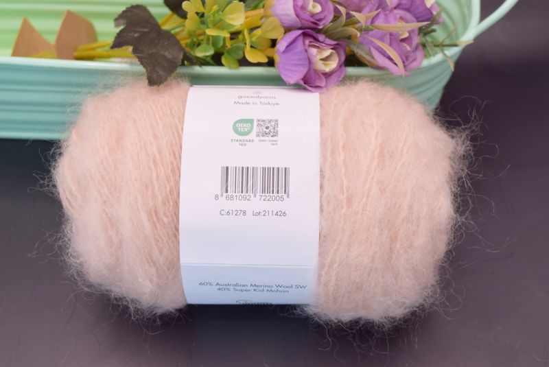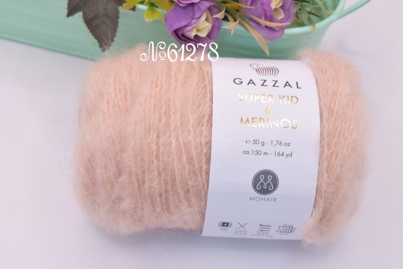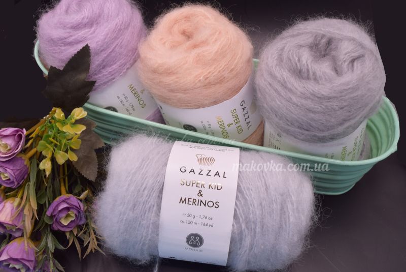 Пряжа Gazzal Super KID & merinos - тонкая пряжа премиум класса. В составе натуральный кид-мохер и нежная мериносовая шерсть из Южной Африки. Нить мягкая, пушистая, матовая. Приятная на ощупь