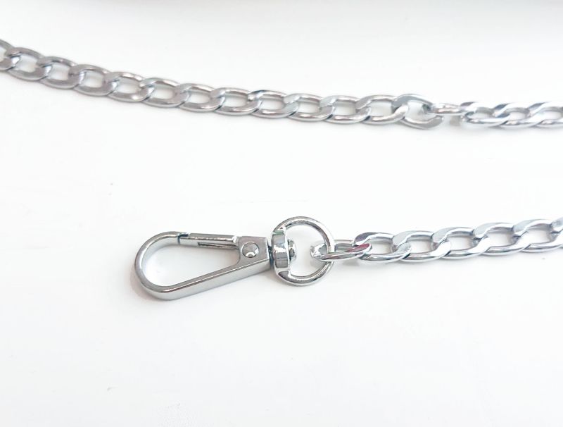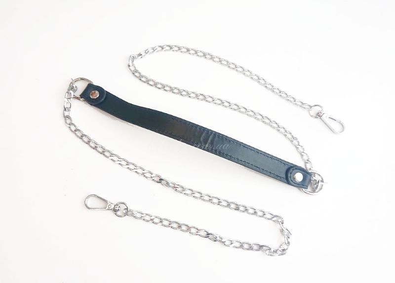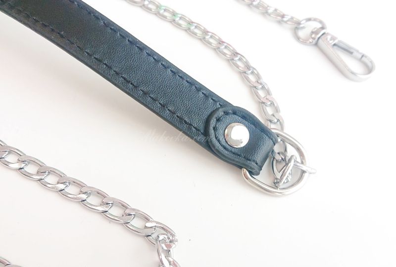 Ручка для сумки, що складається з еко-шкіри по центру і металевих ланцюжків з двох кінців. Завдяки вставці з еко-шкіри ручка буде менше доставляти дискомфорт під час носіння сумочки.
