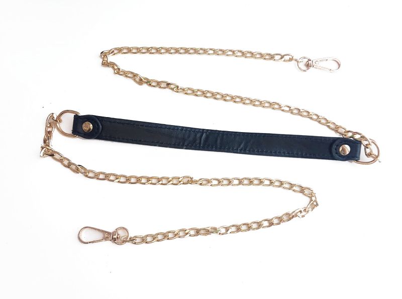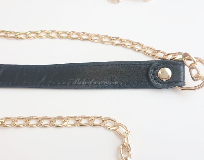 Ручка для сумки, що складається з еко-шкіри по центру і металевих ланцюжків з двох кінців. Завдяки вставці з еко-шкіри ручка буде менше доставляти дискомфорт під час носіння сумочки.