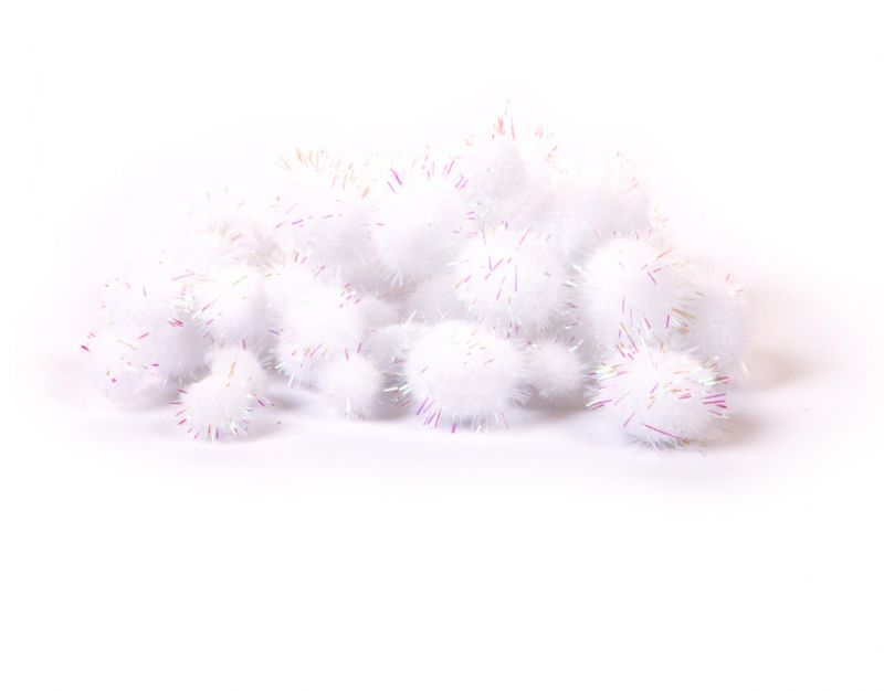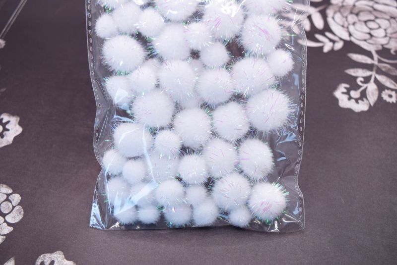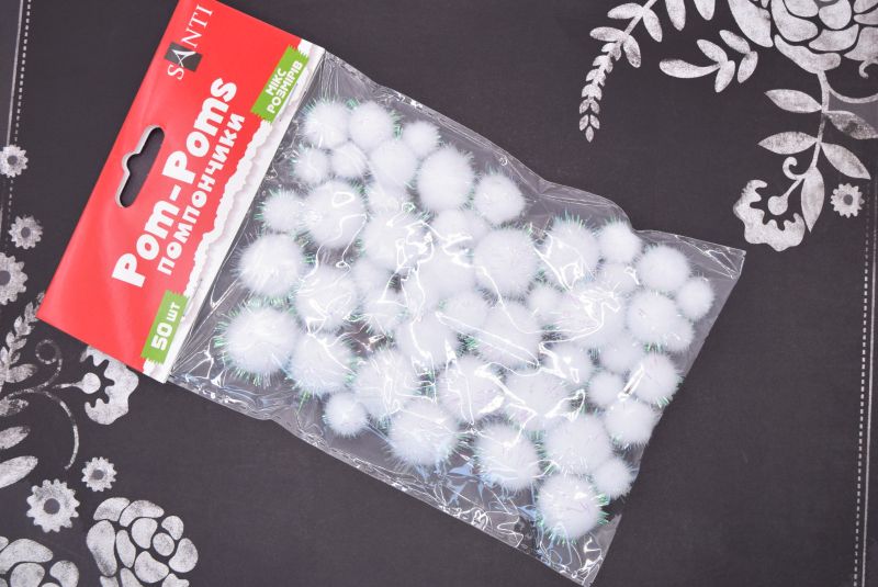 М'які пухнасті кульки, - можна використовувати для найрізноманітніших виробів. У наборі 50 білих помпончиків різного розміру.
