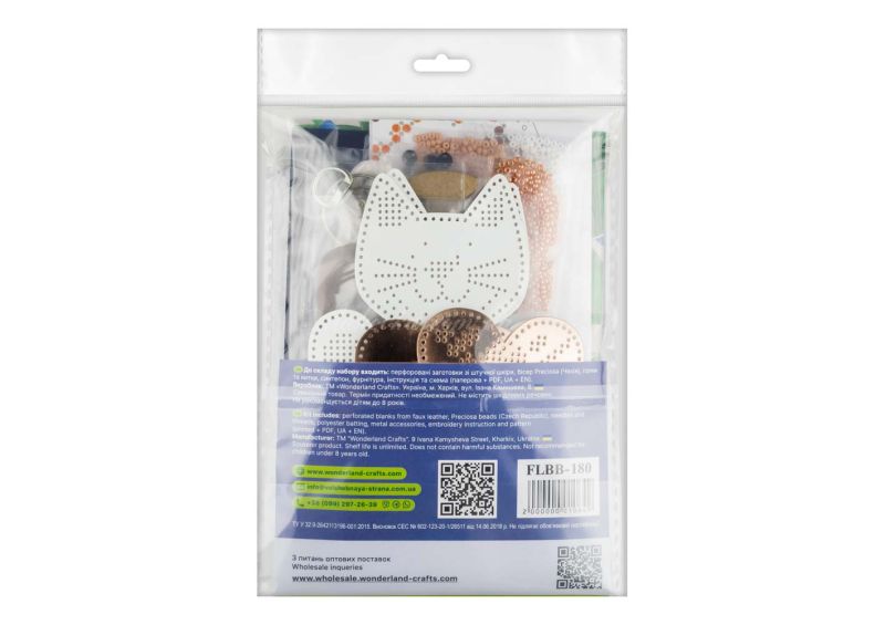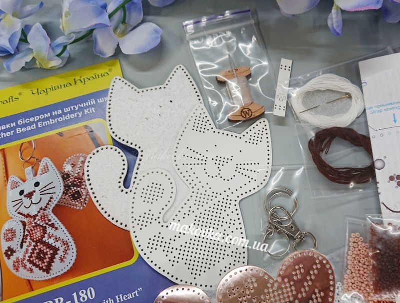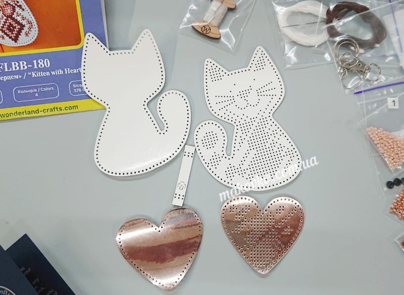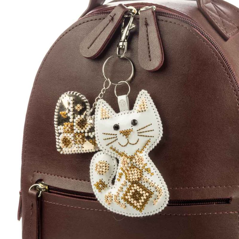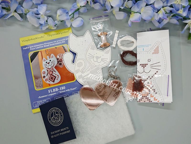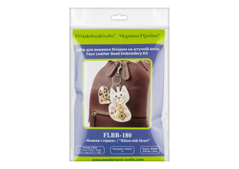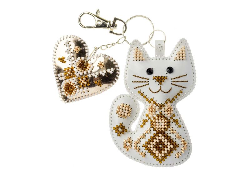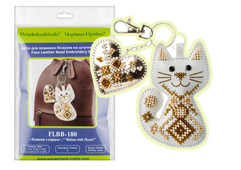 З набором «Кошеня з серцем» (FLBB-180) від Wonderland Crafts ви власноруч вишиєте чарівну підвіску на сумку, що складається з двох елементів: милого білого котика та сяючого золотистого серця.