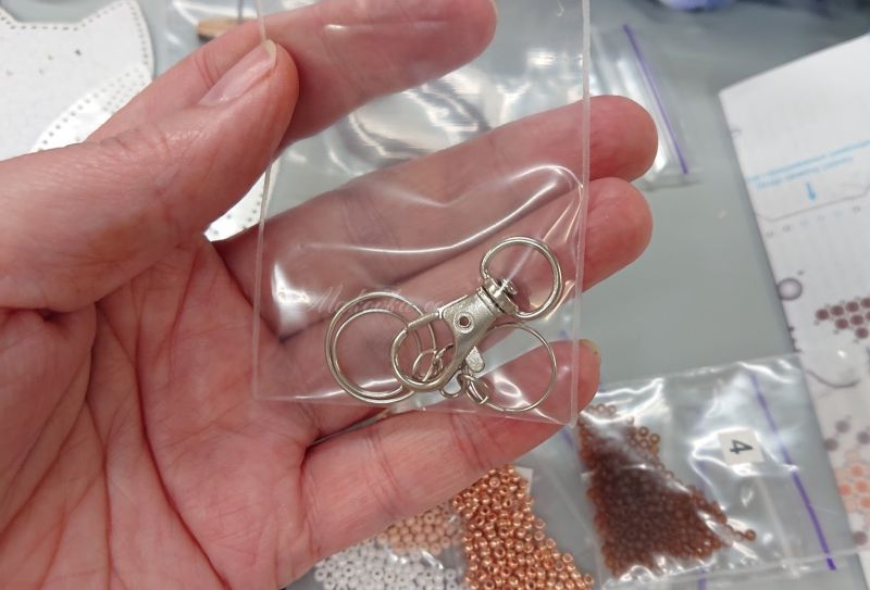 Вишивка виконується на якісній штучній шкірі (екошкірі) з ідеально підготовленою перфорацією. Завдяки цьому голка проходить легко, а бісеринки лягають рівним строєм, створюючи професійний вигляд готового виробу. Вам не доведеться шукати додаткові деталі — набір укомплектований металевим карабіном для зручного кріплення до вашого улюбленого аксесуара.