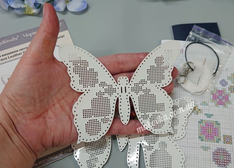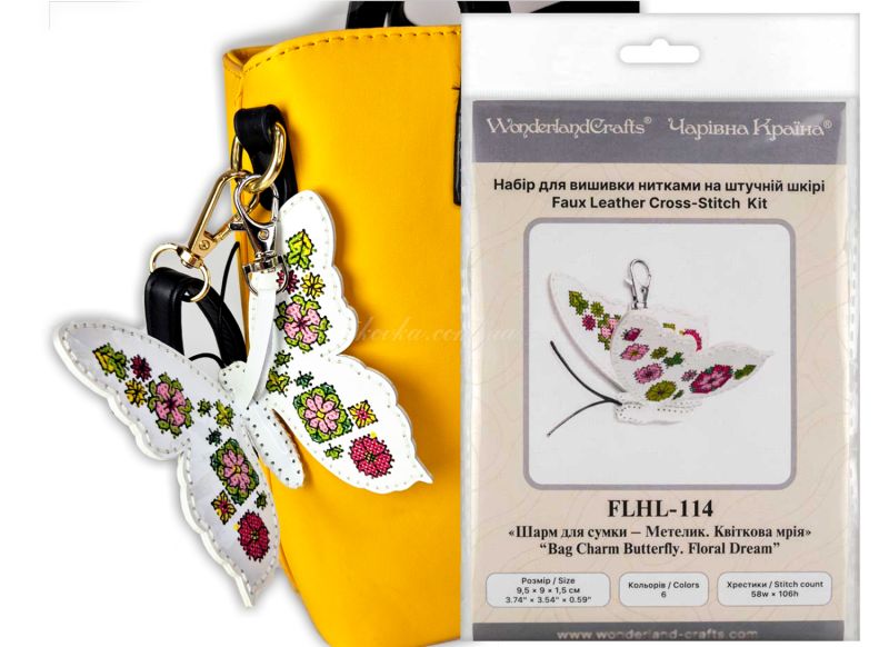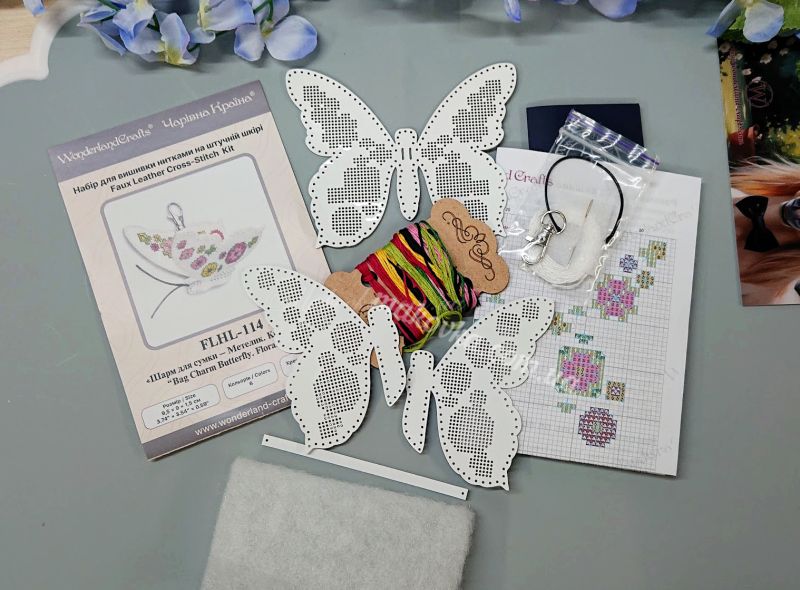 З набором «Квіткова мрія» (FLHL-114) від Wonderland Crafts (Чарівна Країна) ви зможете власноруч створити витончений аксесуар - двосторонній шарм у формі метелика. Вишивка виконується на якісній штучній шкірі з уже нанесеною перфорацією, що гарантує ідеальну точність кожного стібка та задоволення від процесу.