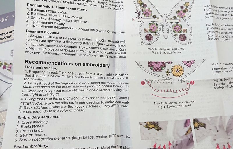 голка для вишивки та спеціальна нитка з голкою для зшивання деталей;