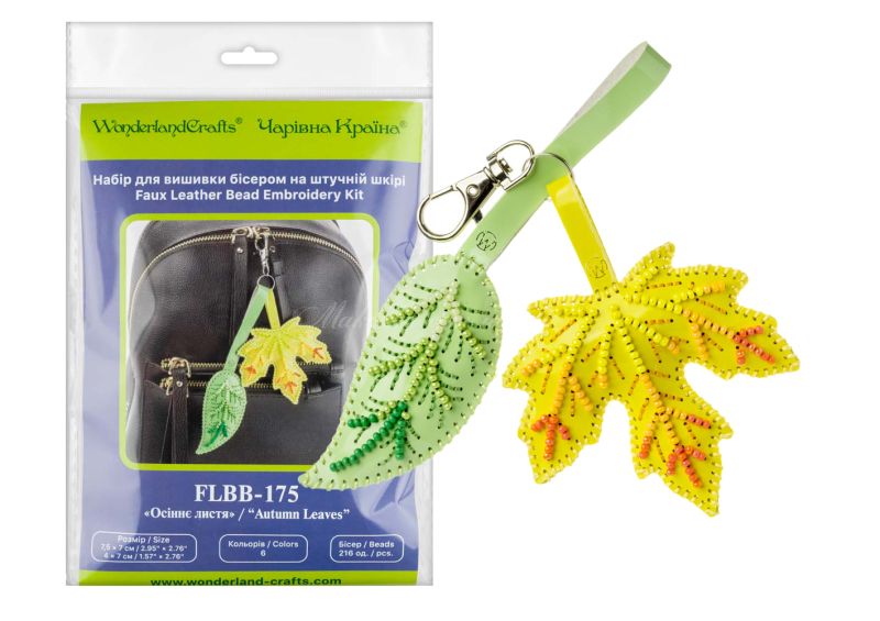 Набір «Осіннє листя» (FLBB-175) від Wonderland Crafts (Чарівна Країна) — це справжній хіт для любителів стильних дрібничок. Ви власноруч створите розкішний багатокомпонентний обвіс, що складається із зеленого листочка та жовтого листка клена.