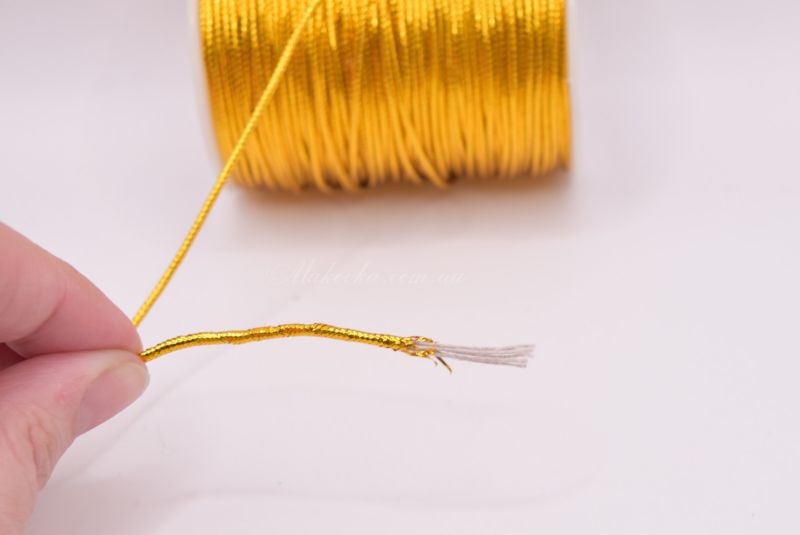 Тонкий металізований (люрексовой) шнур з круглим перетином. В середині шнура 5 тонких ниток.