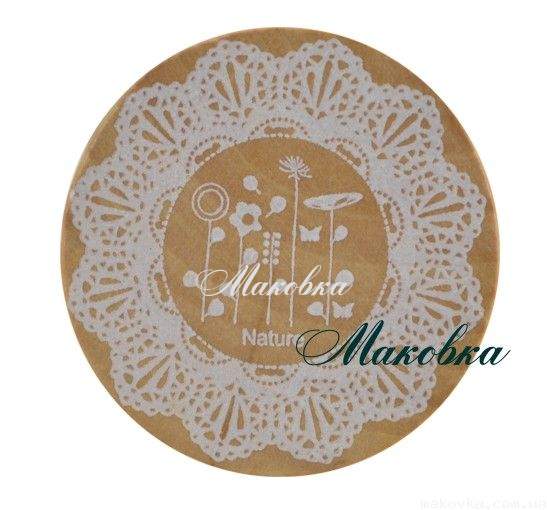 Штамп - кружевная салфетка. В центре рисунка цветочки и надпись nature