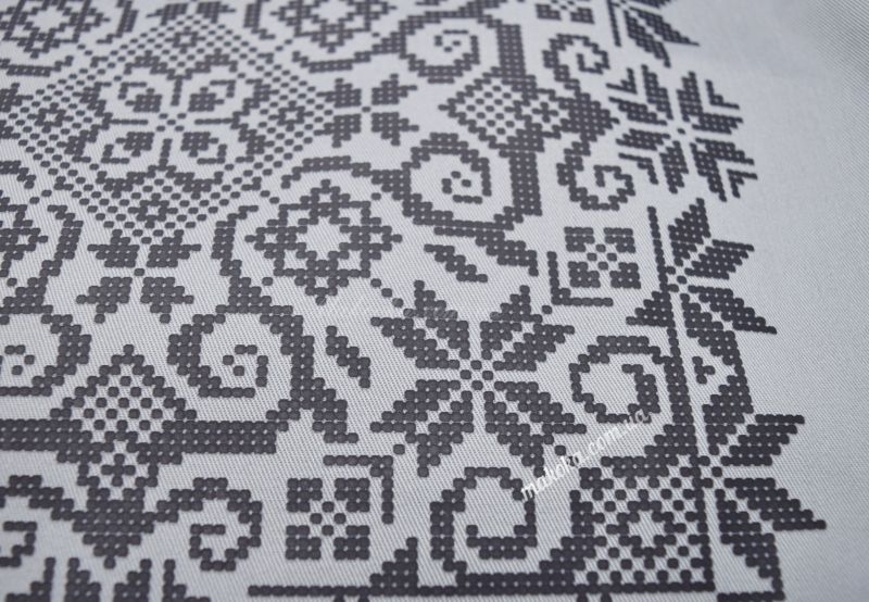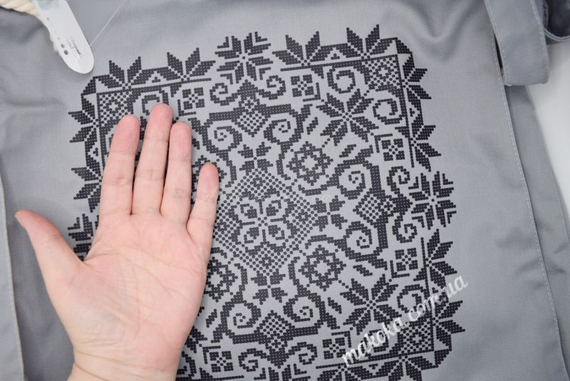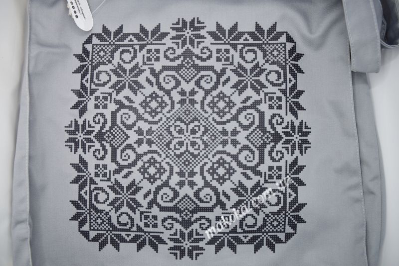 Головною прикрасою моделі є розкішна симетрична мандала. Дизайн поєднує в собі спокій сірого фону та чітку сучасну графіку. Мереживо ліній та дрібних деталей ідеально підходить для створення фактурної вишивки, яка виглядає особливо ніжно та вишукано на цупкій саржі. Це ваш персональний маніфест стилю Boho-art та любові до ручної роботи.