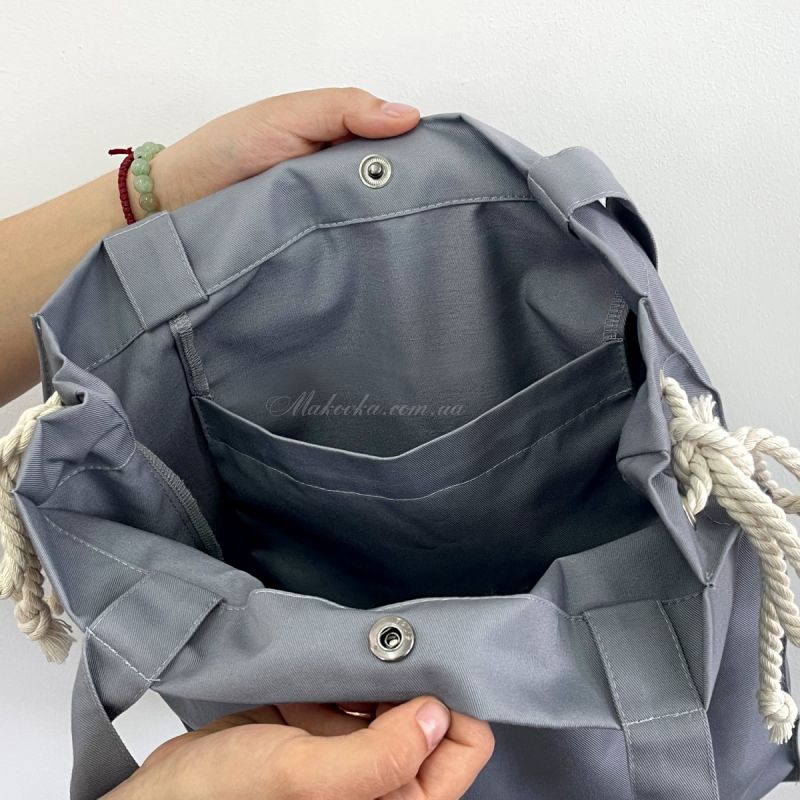 Дизайнерські акценти: З боків сумка оздоблена декоративними вузлами з товстого бавовняного каната, що надає моделі особливого шарму.