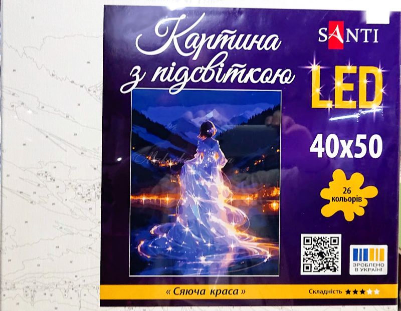 Картина за номерами від бренду SANTI має вбудовані LED елементи, які підсвічують картину та надають їй неймовірного ефекту живого сюжету. Картина з LED елементами може використовуватись не лише у якості декору, ай як нічник, прикрашаючи та доповнюючи ваш інтер’єр. Щоб потрапити до безмежного світу творчості та мистецтва необхідно прости купити картини за номерами з LED підсвіткою і слідувати інструкціям, доданим до набору.
