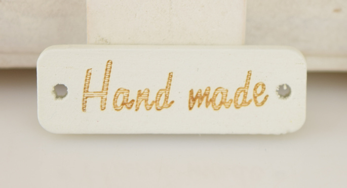 Маленькая деревянная нашивка-табличка из дерева с надписью "хенд мейд".
