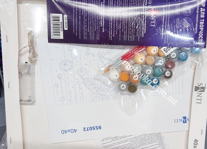 Набір для малювання SANTI допоможе створювати дивовижні сюжети, слідуючи пронумерованим контурам на полотні та використовуючи якісні акрилові фарби.