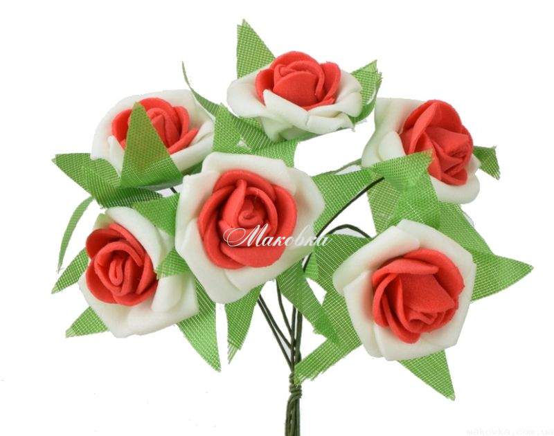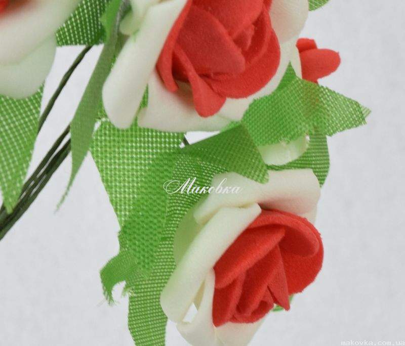 Набір квіточок - трояндочок на тонких дротяних стеблинках. Трояндочки двоколірні. Крайні пелюстки красиво скручені