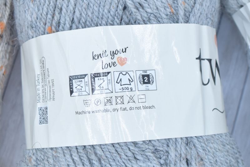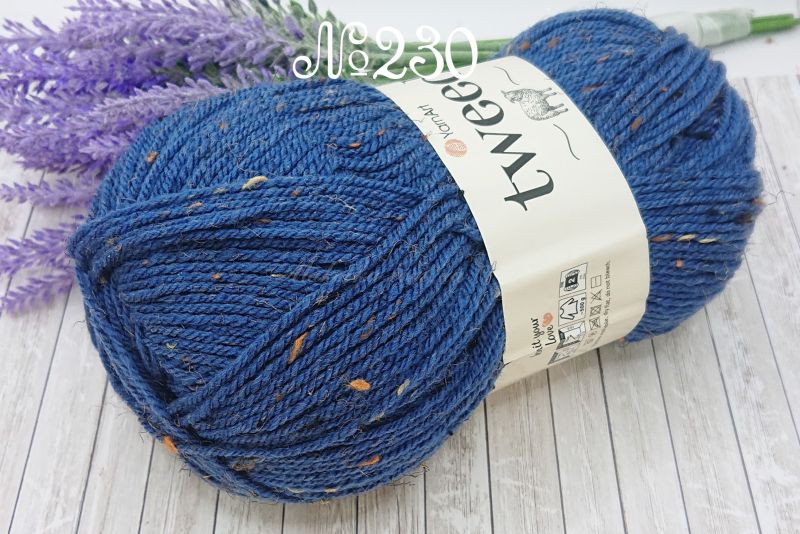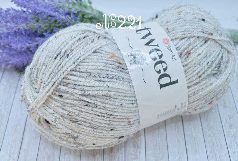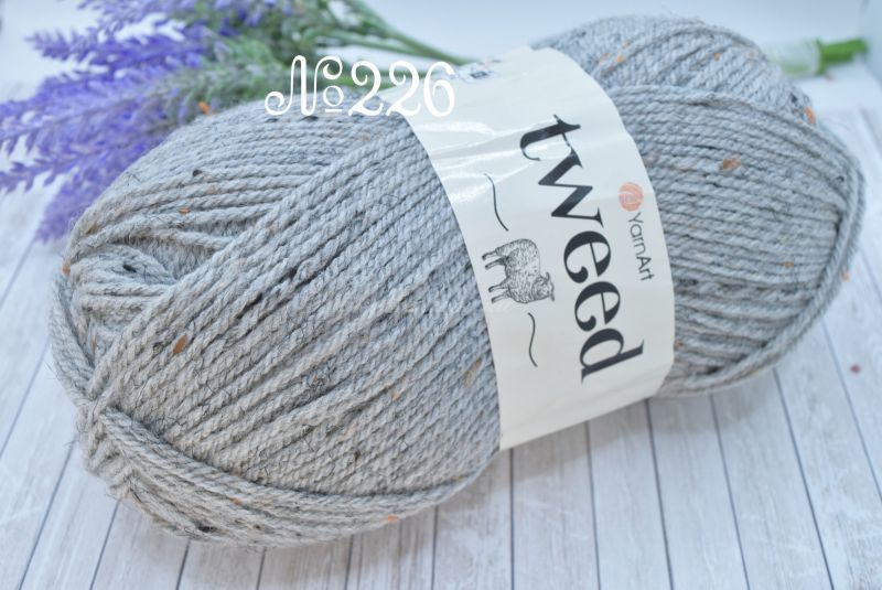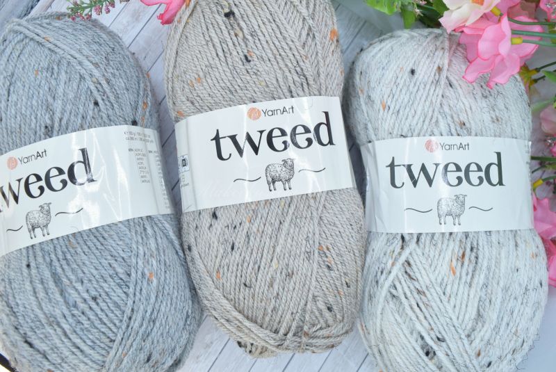 Tweed - напіввовняна пряжа. Нитка середньої товщини, середньої жорсткості, трохи пухка. Пряжа Tweed YarnArt має цікаву фактуру, коли в основну нитку місцями вплетені волокна, що відрізняються за кольором. Речі з Tweed виглядають цікаво. Допускають машинне прання.