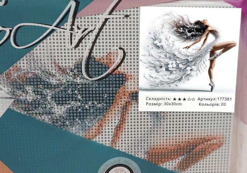 Склад: полотно з основою, що є клейка (повністю або частково ), дерев'яний підрамник, стрази, контейнер для страз, олівець для страз, сухий клей, інструкція по використанню.