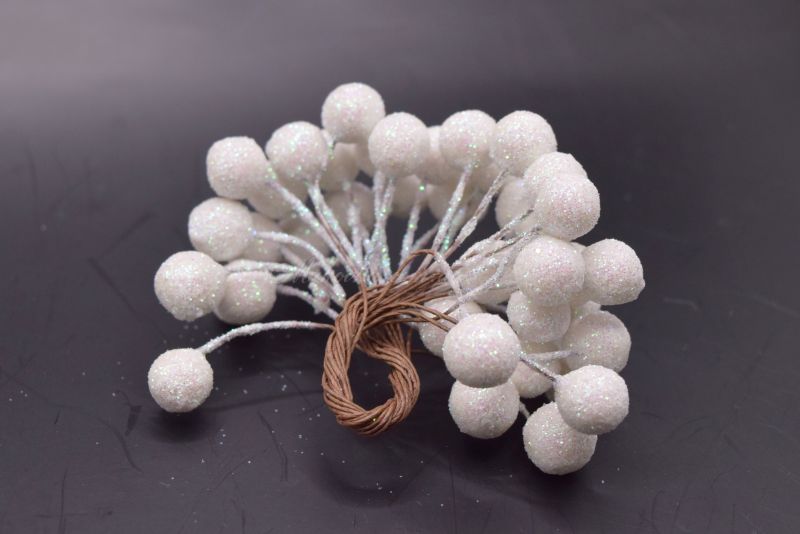 Набір круглих ягід в дрібному "цукровому" обсипанні що красиво мерехтіть на світлі. Кожна ягідка на дротяної ніжці