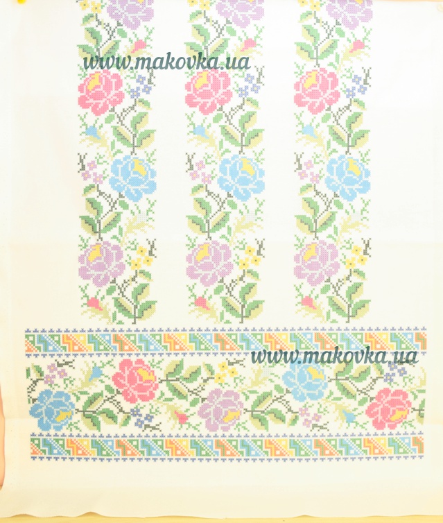 Заготовка очень красивой модной вышиванки с орнаментом из небольших разноцветных роз. Орнамент вышивается по всему рукаву и спереди.