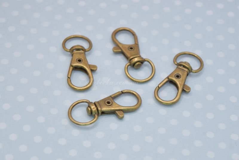 Лобстер застібка для сумки або брелка 12x30x5 мм, колір Антична бронза, 1 шт